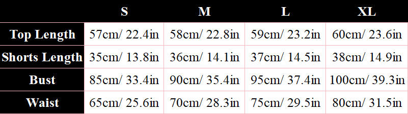 Package including: 1*top, 1*shorts