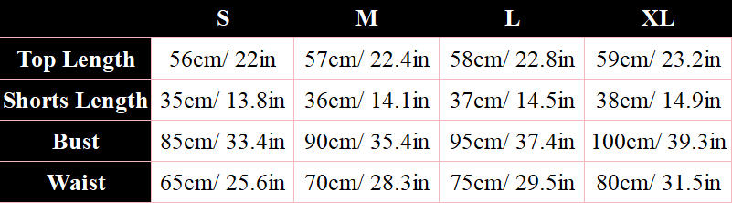 Package including: 1*top, 1*shorts