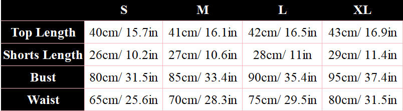 Package including: 1*top, 1*shorts