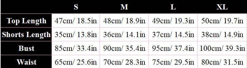 Package including: 1*top, 1*shorts